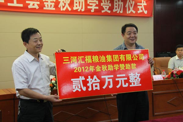 Mr. Zhang Xuemin donated 200 thousand RMB to “Golden Autumn Education Grant ”project of Lang Fang city on behalf of HOPE FULL